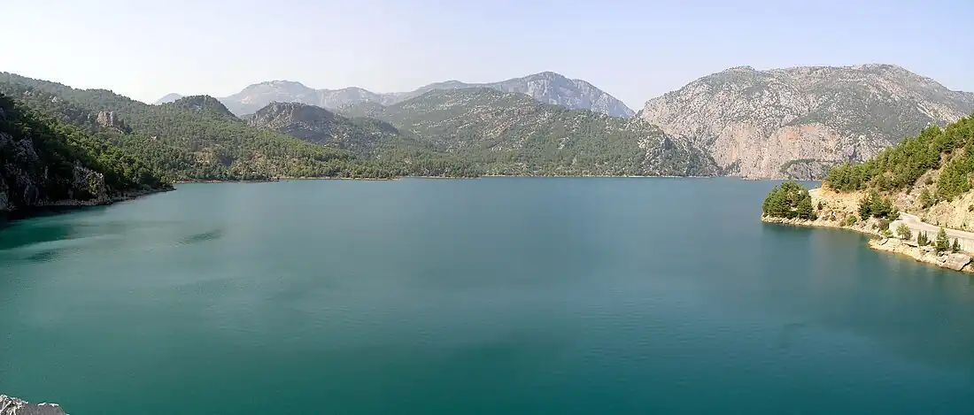 Панорама водохранилища Оймапынар на реке Манавгат (вид с гребня плотины)