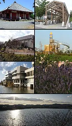 - ↑ Площадь указывается по данным сайта Geospatial Information Authority of Japan (яп.) с учётом изменений, опубликованных 1 октября 2011 года.