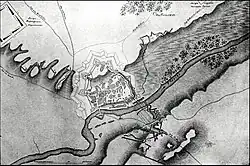 ![]() Приступ русских войск к городу Дерпту с западной стороны 9 августа 1704 г. Рисунок пером, разбавленными чернилами 1760-х | |||