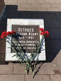 В городском парке города Электроугли установлена памятная плита руководителю Управления космодрома Байконур — Осташеву Е. И.