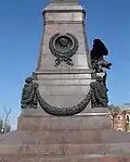 На восточной стороне находится герб Российской империи — двуглавый орёл, в лапах которого свиток, царский рескрипт, данный на имя наследника, цесаревича Николая Александровича: