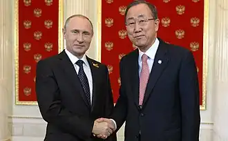- ↑ Указ Президента Российской Федерации от 8 июня 2016 года № 268 «О награждении орденом Дружбы Пан Ги Муна». Дата обращения: 8 июня 2016. Архивировано 24 июля 2019 года.