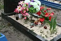 После утренней службы в первый день Пасхи ходят «христосоваться с усопшими» на кладбище[18][19]. Там трижды перекатывают через могилки яйца, говоря: «Христос воскрес», «Воистину воскрес!»[20], зарывают яйцо в могилу[21]. Поминовение умерших на Светлой неделе противоречит церковной практике (как несовместимое с радостью по поводу Воскресения Христа) и сохранило статус сугубо народного обычая[1].