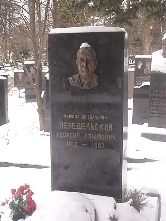 - ↑ В Михайловской военной артиллерийской академии открыта мемориальная доска маршалу артиллерии Георгию Передельскому. Дата обращения: 20 ноября 2020. Архивировано 20 ноября 2020 года.