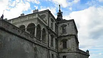 На месте сегодняшнего замка существовали более древние укрепления, которые упоминаются около 1530 года. По заказу коронного гетмана Станислава Конецпольского, который купил замок в 1633 году, у Подгорецких, известный архитектор фортификаций Гийом Левассер де Боплан создал проект укреплений, а Андреа дель Аква — двухэтажного дворца с трёхэтажными павильонами по сторонам и башней, в стиле барокко и позднего ренессанса. Строительство велось на протяжении 1635—1640 годов. Служебные помещения образовывали квадратный двор с террасой, приспособленной для возможной обороны. С трех сторон дворец был окружен глубоким рвом, с северной стороны, обращенной к равнине, у него была красивая терраса с балюстрадой и скульптурами. К замку выезжали через большую арку — портал с двумя колоннами. В 1646 году замок посетил король Владислав IV, в честь которого был устроен фейерверк. Во время боевых действий в период освободительной войны под командованием Богдана Хмельницкого замок получает серьёзные повреждения. Станислав Освецим в 1651 году писал: