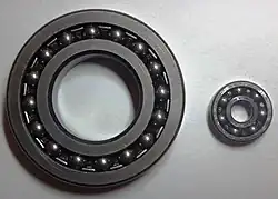 - Гибридные: стальные кольца, тела качения неметаллические, как правило, керамические, применяются в быстровращающихся механизмах, чаще всего — в газотурбинных двигателях;
