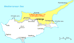 ![]() Карта территории, занимаемой Турецкой Республикой Северного Кипра |