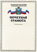 Почётная грамота Псковского областного Собрания депутатов является высшей наградой законодательного органа государственной власти Псковской области, учреждённой в целях поощрения граждан Российской Федерации, иностранных граждан и организаций за активное участие в законотворческой деятельности, общественной жизни, обеспечении прав и свобод граждан, укреплении государственной власти и местного самоуправления, весомый вклад в социально-экономическое развитие Псковской области. Награждение Почётной грамотой Псковского областного Собрания депутатов осуществляется постановлением Псковского областного Собрания депутатов в соответствии с Положением о Почётной грамоте Псковского областного Собрания депутатов. |