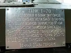 | Памятник-танк Т-70[9] | Улица Нормандия-Неман, возле Военно-исторического музея | Был установлен 7 августа 1943 года на братской могиле в Первомайском сквере (ныне Танкистов) в честь воинов танкистов, погибших при освобождении Орла. В 1985 году танк установили около Военно-исторического музея. | ![]() ![]() | ||