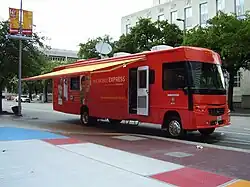 Мобильный Экспресс ПБХ - это мобильная лаборатория компьютерного обучения. Представляет из себя передвижной автобус, окрашенный в характерные цвета Публичной библиотеки Хьюстона (красный и белый)[17].