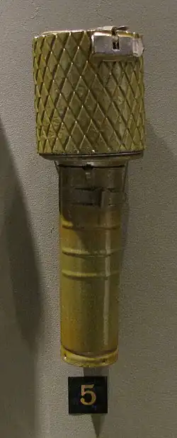 - выбирать цель для броска и метнуть в неё гранату — за счёт взмаха внешняя часть рукоятки с ударником соскакивала с боевого взвода и накалывала капсюль запала, запуская процесс его горения;