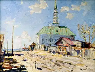 Его первые живописные работы, рассказывающие о Казани и Казанской губернии, регулярно начали появляться с 1908 года («Окраина Казани», 1908; «Суконная слобода в Казани. Зима», 1910; «Рыбный базар в Казани», 1911; «Пожарная каланча в Казани», 1917; и проч.). В первые десятилетия своей работы изображал преимущественно избушки и «огороды затихших глухих деревень».