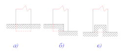 В зависимости от положения рабочего органа в грунте во время резания различают блокированное, полусвободное и свободное резание (см. рис. 1). Наибольшее практическое значение имеет полусвободное резание грунта, так как блокированное и свободное резание наблюдаются только в начале и в конце процесса резания.
