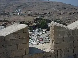 - Величественный Акрополь, античные руины которого гармонично переплетены со средневековыми стенами и зданиями крепости госпитальеров, доминирует над уютной деревенькой, слагаемой бело-коричневой архитектурой как вековых, так и более современных построек. Три колонны и фундамент храма Аполлона, построенный вокруг циклопических размеров прямоугольного камня. Отреставрированные остатки театра и единственный в мире сохранившийся до наших дней Олимпийский стадион — аналог стадиона древней Олимпии.