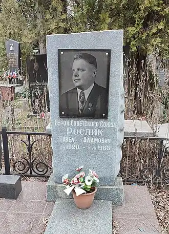 Павел Адамович Рослик (15.5.1920 — 5.7.1965) — командир мотострелкового батальона 32-й Корсуньской мотострелковой бригады 18-го Знаменского танкового корпуса 53-й армии 2-го Украинского фронта, капитан. Герой Советского Союза.