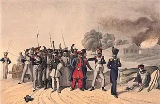 - ↑ Вейсенгоф Я. Из записок генерала Яна Вейссенгофа // Военно-исторический сборник. Приложение к журналу «Военный сборник» / Пер. с польск. М. Новацкой. — СПб.: Тип. Главн. упр. уделов, 1912. — № 2. — С. 227.