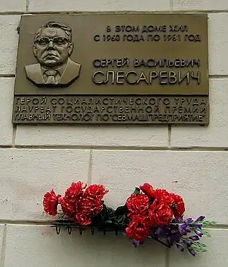 - 21 декабря 2001 года в Северодвинске на доме, в котором жил С. В. Слесаревич, установлена мемориальная доска[2].