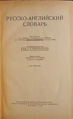 - «Большой русско-английский словарь», 1948 (и переизд.);