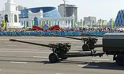 Пояснение: согласно некоторым источникам, на вооружении артиллерийских частей Сухопутных войск Казахстана, также имеются такие образцы вооружения как РСЗО «Найза» на базе КамАЗ-6350, самоходный 120мм миномёт «Айбат» на базе МТ-ЛБ и самоходная 122мм гаубица «Семсер» на базе КамАЗ-6350. Однако данные образцы, разработанные при участии специалистов израильских компаний Soltam Systems и Israel Military Industries, так и не были приняты на вооружение казахстанской армии. Причиной отказа принятия стали конструктивные недостатки, выявленные в ходе государственных испытаний. Так в миномёте «Айбат» после выстрелов происходила деформация днища тягача. Шасси гаубицы «Семсер» оказалось перегруженным. А в РСЗО «Найза» выход реактивных струй от снарядов мог повредить платформу на которой был установлен пакет с направляющими и кабину с расчётом. Из-за выявленных при испытаниях недостатков, было возбуждено уголовное дело, по которому главными обвиняемыми проходили Начальник Артиллерии и ракетных войск Сухопутных войск генерал-лейтенант Маерманов Кажимурат и гражданин Израиля Борис Шейнкман. В ходе судебного разбирательства было доказано, что все три образца оказались непригодными к эксплуатации, из-за технических просчётов израильских инженеров, а также некачественной сборки лицензионных систем на казахстанских оборонных предприятиях[29][30][31]. До ноября 2008 года казахстанская армия должна была получить 2 огневые батареи «Айбат» и «Семсер» по 6 единиц каждая, а также дивизион «Найза» из 18 единиц с транспортно-заряжающими машинами в комплекте. Однако были получены только по 2 единицы «Айбат», «Семсер» и «Найза»[32]. По состоянию на август 2009 года, артиллерийские системы «Найза» и «Семсер» так и не были приняты на вооружение[33].