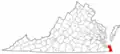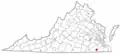 | Питсилвейния | 1767 | Чатем | 61 687 (2016) | 2533 / 2510 | 24,6 | Самый большой округ Виргинии по площади суши. В округе находится крупнейшее в США (7-е в мире) неразработанное месторождение урана. | |