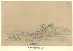 ![]() | Т. Г. Шевченко рисует крестьянское подворье | Бумага, сепия | 18,5×27 | весна 1845 | [83] |