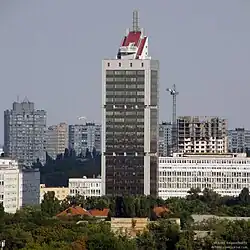 120 | 28 | 1974—1986 | 50°26′58″ с. ш. 30°28′51″ в. д. | Киев | В 2003 году здание было полностью реконструировано, также была установлена 8-метровая антенна, с учётом которой высота здания составляет 128 метров |