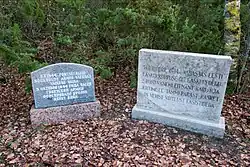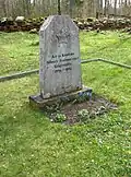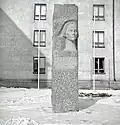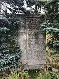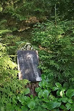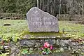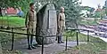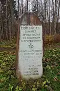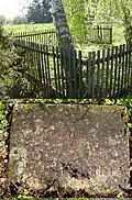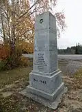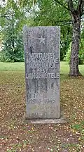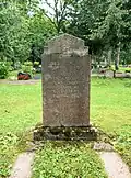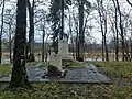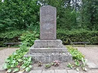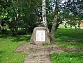 с 1997 до 2024 года[27]. Первоначальный бетонный советский памятник с другой надписью стоял перед зданием волостной управы, где также находится братская могила, современный памятник из валуна с чёрной гранитной плитой расположен к востоку от могилы на газоне и был установлен там в 1990-х годах. | ||