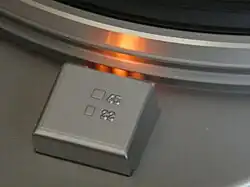 На стробоскопическом эффекте основана регулировка скорости вращения диска некоторых проигрывателей грампластинок: освещение производится неоновой лампой, питаемой от сети 50 Гц, поэтому лампа мерцает с частотой 100 Гц. При точной настройке скорости вращения диска изображение штрихов на поверхности диска, освещаемой стробоскопом, кажется неподвижным. Подстройка скорости вращения диска (частоты вращения электродвигателя) производится управлением электронной схемы привода диска.