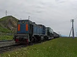 ![]() Тепловоз ТГМ11-0004 на базе запаса станции Тымовск. | |
