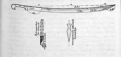 Погиб клинка на 39,7 см длины имеет 3,3 см от верхней прямой α, соединяющей точку поверхности обуха у посада рукоятки и конец шашки[10].