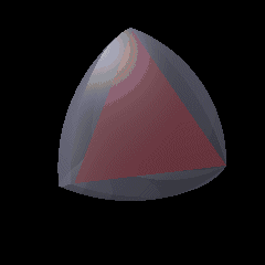 Однако, в отличие от треугольника Рёло, тетраэдр Рёло не является телом постоянной ширины: расстояние между серединами противоположных граничных криволинейных рёбер, соединяющих его вершины, в
