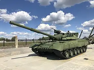 Танк с единой газотурбинной силовой установкой[5]. Первый в мире основной танк со встроенной противоснарядной динамической защитой. Принятый на вооружение в 1976 году армии СССР, затем России. Первые серийные образцы, разработанные СКБ-2 на базе Т-64А, выпускались на Кировском заводе в Ленинграде. Танк Т-80У выпускался на заводе «Омсктрансмаш» в Омске, а танк Т-80УД с дизельным двигателем — на ХЗТМ в Харькове.