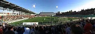 - Вид на крытую трибуну «A» (на баннере виден логотип арены), 2015 год