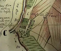 Третья зона, в которой сосредоточены хозяйственные постройки, находится в северной части усадьбы. Видимо, в XIX в. построек было гораздо больше, а до наших дней дошли зернохранилище, выстроенное в стиле позднего классицизма, кузница, конюшня, погреб, винокуренный завод и две деревянные на кирпичных столбах хозяйственные постройки[3].