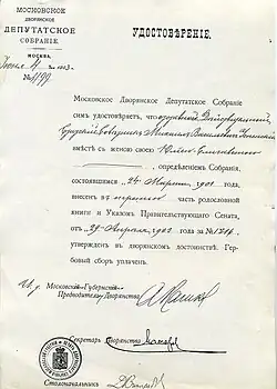 По чину действительного статского советника 24 марта 1901 года было пожаловано Дворянское достоинство.