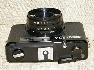 - Корпус с открывающейся задней крышкой. Курковый взвод затвора и перемотки плёнки, курок имеет два положения — рабочее и транспортное. Имеется блокировка от неполного взвода затвора. Автоматический самосбрасывающийся счётчик кадров. Рукоятка обратной перемотки типа рулетка.