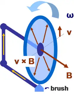 - «Homopolar Electric Dynamo» — contains derivation of equation for EMF of a Faraday disc