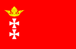 Во времена Вольного города Данциг (1807-1814 и 1920-1939) в качестве государственного флага использовался городской флаг[4]. По сравнению с нынешним данный флаг в 1920-1939 гг. имел немного другой оттенок, а корона была частично покрыта крестом. Он имел соотношение 2:3 (в настоящее время 5:8)[6].