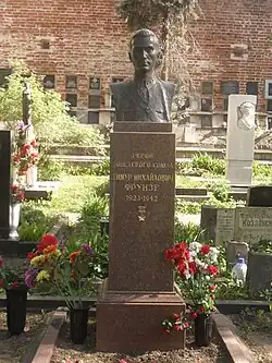 После войны, в 1950-х годах, по желанию сестры Татьяны, перезахоронен на Новодевичьем кладбище в Москве[10].