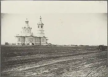 Часовня на переселенческом пункте была построена приблизительно между 1893 и 1910 годами. Была расположена в районе ул. Карельцева — ул. Пушкина — ул. 9 января. Не сохранилась[35].