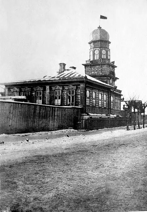 Деревянная Христорождественская церковь имела два престола: главный — во имя Рождества Христова и придельный — в честь Димитрия Солунского. Сгорела в ночь на 30 апреля (11 мая) 1763 года. Для отправления богослужений и исправления церковных треб до освящения нового храма «мирским коштом» было куплено бывшее помещение канцелярии Сибирского драгунского полка «о двух покоях», к которому пристроили алтарь[2].