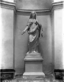 Вначале внутри находилась большая мраморная статуя императрицы Екатерины II, но в 1791 году скульптуру подарили графу И. Г. Чернышеву, и в 1792 году установили алебастровую фигуру императрицы в образе Цереры, древнеримской богини мудрости, плодородия и материнства.