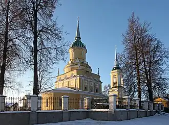 В начале XIX века Успенская церковь была перестроена. Храм был значительно расширен за счет пристройки вместительной теплой трапезной с двумя приделами; изменился общий вид храма — он был декорирован и во внешнем оформлении вместо стиля барокко появился классический стиль: карниз, белокаменные колонны. Один из приделов был освящён в честь Святых благоверных Бориса и Глеба, другой — иконы Божией Матери «Знамение»[4]: