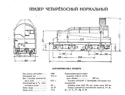 ![]() Четырёхосный нормальный тендер паровоза Щ (с паровозом С.68) | |