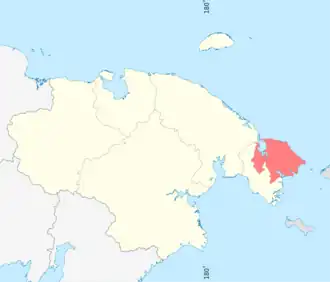Чукотский муниципальный район на юге граничит с Провиденским районом, на западе с Иультинским районом.