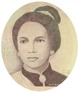 Чут Няк Дин (1848, Лампаданг (ныне Большой Ачех), султанат Ачех — 6 ноября 1908, Сумеданг, Западная Ява, похоронена в городе Гунунг-Пуюх, Сумеданг) — индонезийская ачехская военная деятельница, Национальный герой Индонезии (посмертно), сражавшаяся против нидердландских колонизаторов в период Ачехской войны. Происходила из зажиточной семьи народа минангкабау[5]. После атаки голландцев на Ви Муким она находилась в эвакуации, пока её муж, Теуку Ибрагим Ламнга, сражался с голландцами. Ибрагим Ламнга был убит в бою у Гле Тарум 29 июня 1878 года, что привело к озлоблению со стороны Чут Няк Дин и принятию ей обета изгнать голландцев из Ачеха.