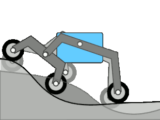 Чтобы преодолеть вертикальное препятствие, передние колеса прижимаются к препятствию за счёт оказываемого центральными и задними колесами давлением. Вращение переднего колеса и воздействие на рычаг bogie помогает поднять передние колёса на препятствие. Затем среднее колесо прижимается к препятствию, и затаскиваются на верх вращением передних колёс и давлением задних. Наконец, задние колеса затаскиваются на препятствие передними и центральными колёсами.