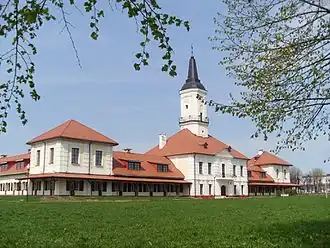 Транспорт![]() Через район проходят железная дорога и автотрасса Орша — Могилёв, автомагистраль Витебск — Гомель. Шклов связан автодорогами с Круглое, Горками, Оршей, Белыничами и с Могилёвом. ЗдравоохранениеВ 2017 году в учреждениях здравоохранения района работало 67 врачей и 261 средний медицинский работник, в лечебных учреждениях было 185 больничных коек (158 коек на 01.01.2023). Численность врачей в пересчёте на 10 тысяч человек — 24,5 (средний показатель по Могилёвской области — 34,6, по Республике Беларусь — 40,5), количество больничных коек в пересчёте на 10 тысяч человек — 67,7 (средний показатель по Могилёвской области — 83,1, по Республике Беларусь — 80,2). По этим показателям район занял 5-е и 14-е места в области соответственно[46]. ОбразованиеВ 2017 году в районе насчитывалось 21 учреждение дошкольного образования (включая комплексы «детский сад — школа») с 1 тыс. детей[47]. В 2017/2018 учебном году в районе действовало 18 учреждений общего среднего образования, в которых обучалось 2,9 тыс. учеников[48]. В школах района работало 437 учителей. В среднем на одного учителя приходилось 6,7 учеников (среднее значение по Могилёвской области — 8,4, по Республике Беларусь — 8,7)[49]. В районном центре расположена Шкловская государственная специальная общеобразовательная школа-интернат для детей с нарушениями зрения — единственное учреждение этого профиля в Могилёвской области[50]. В районном центре расположен УО "Шкловский государственный колледж" (ранее-Шкловский государственный профессиональный лицей №12)[51]. КультураНа территории района функционируют районный Дом культуры, 9 сельских Домов культуры, 14 сельских клубов, 2 клуба-библиотеки, 35 библиотек, из которых 28 сельских, 5 библиотек-клубов, центральная и детская библиотеки, детская школа искусств с пятью филиалами на селе, Цент досуга молодёжи, 13 видеосалонов. Книжный фонд насчитывает 442 729 экземпляров книг и периодических изданий. В учреждениях культуры действует 206 кружков художественной самодеятельности, 70 любительских объединений, 10 фольклорных коллективов, 2 аутентичных, 3 фольклорных семейных коллектива, 12 коллективов имеют звания «народный» и «образцовый». Действует Шкловский районный историко-краеведческий музей, в котором собрано более 6 тысяч музейных предметов основного фонда. В 2016 году музей посетила 21 тыс. человек (по этому показателю музей занял 7-е место в Могилёвской области)[52]. У музея два филиала — дом-музей Петра Алейникова (деревня Кривель) и музей трудовой и боевой славы «Сельхозтехника» (Шклов)[53]. События и мероприятия