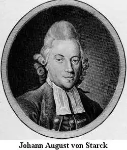 - ↑ Paul Tschackert. Starck, Johann August. In: Allgemeine Deutsche Biographie (ADB). Band 35, Duncker & Humblot, Leipzig 1893, S. 465 f.