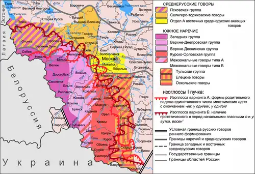 - 1 2 Букринская И. А, Кармакова О. Е. и другие. О диалектном членении русского языка: наречия и диалектные зоны. Язык русской деревни. Диалектологический атлас. Архивировано из оригинала 7 июня 2012 года. (Дата обращения: 30 ноября 2013)